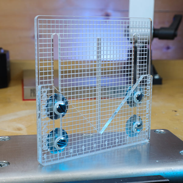 Bench Basics newest innovation is a time saving tool that helps you to quickly find the center of any round shaped disc before drilling, tapping, or laying out. Works great on disc as small as 1mm all the way up to 50mm in diameter, and up to 8 gauge thickness. The center finder also features a ruler on the flat edge that slides up to quickly draw out straight lines when laying out a new design. Made in USA from quality break-proof acrylic sheet.