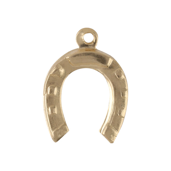 Stamped from double clad 14k Gold Filled, this is a tarnish and waterproof charm used for permanent jewelry. A unique charm for the equestrian enthusiast is a great addition for pop-ups with a farm or country theme. Dainty but tough, this charm will stay put with the help of a 22-24 gauge jump ring