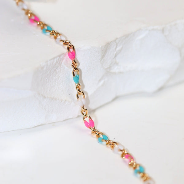 Choose our vibrant gold-filled enamel link chain for your next permanent jewelry piece – a colorful and enduring symbol of your unique style.