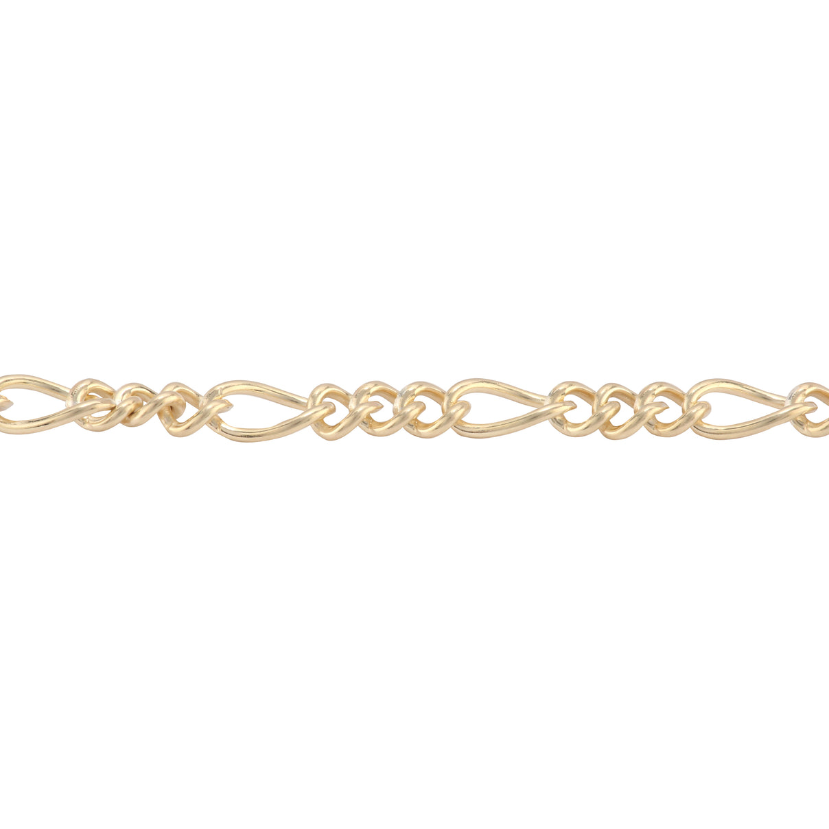 Featuring a Italian Figaro style 3+1 loop with a champagne finish. Manufactured in the USA from high quality gold-filled - this chain is not plated with gold to maintain the natural gold-filled look. As a heavier chain, it could work great as an anklet or a men's permanent jewelry bracelet chain. Available at wholesale pricing in bulk spools - this high quality chain will be loved by your customers. Use with a 22 gauge, 3mm yellow gold or gold filed jump ring.